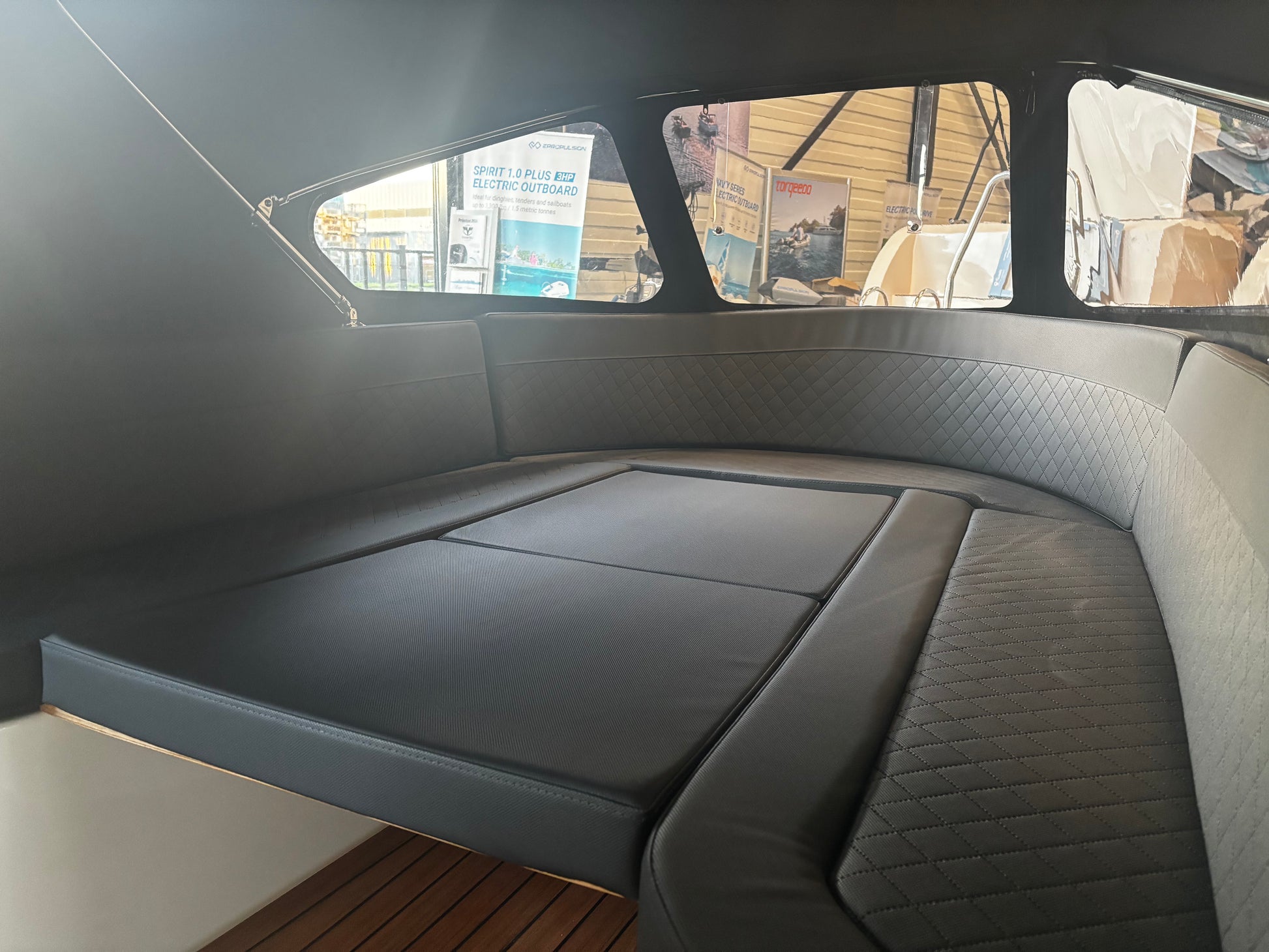 - Ein wunderschöner Grauton in RAL 7030 (Rumpf und Deck). Dieses Grau ist kein Hellgrau. RAL 7030 wirkt durch seinen warmen Unterton etwas wärmer. Es tendiert eher zu bräunlichen Grautönen – ein Grau, das keinesfalls kühl oder distanziert wirkt.