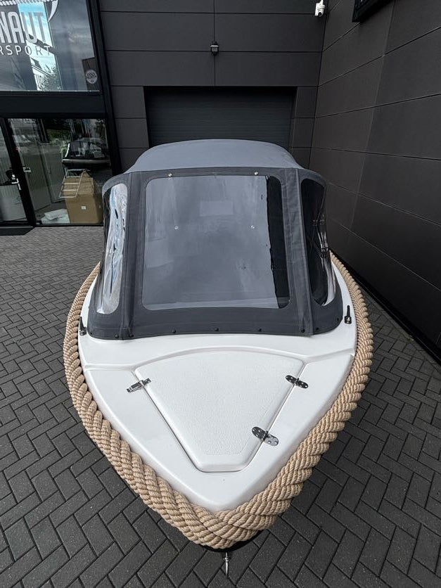 De oprolbare voorruit zorgt voor heerlijke verkoeling. - Kikkers in RVS (roestvast staal) voor vastleggen met landvasten (lijnen).