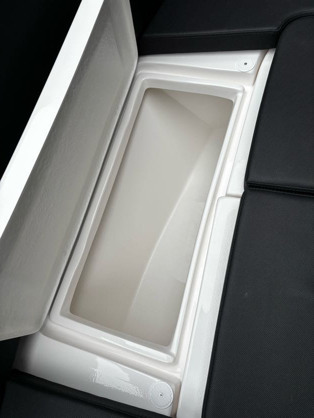 - 4 diepe opbergvakken (bakskisten) in de banken en in de kuip.