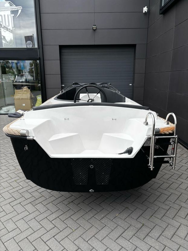 - Diepe polyester witte kuip met zwarte romp (andere RAL kleuren leverbaar). Polyester is onderhoudsarm en eventuele vaarschade is goed te repareren.