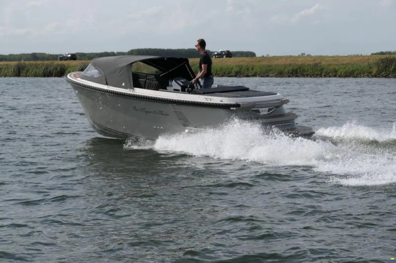 Onze prijzen zijn wél all in dus met HPL/foam teak op de vloer en het zwemplateau en de zwemplateau treden, 30 pk motor (of elektrische 2,7 kW met 4kWh accu) met luxe inbouw afstandsbediening, kabelaring, buiskap met kuipzeil, gewatteerde kussenset met bunkussen, zwemtrap, automatische bilgepomp, fenderhaken dus echt vaarklaar!