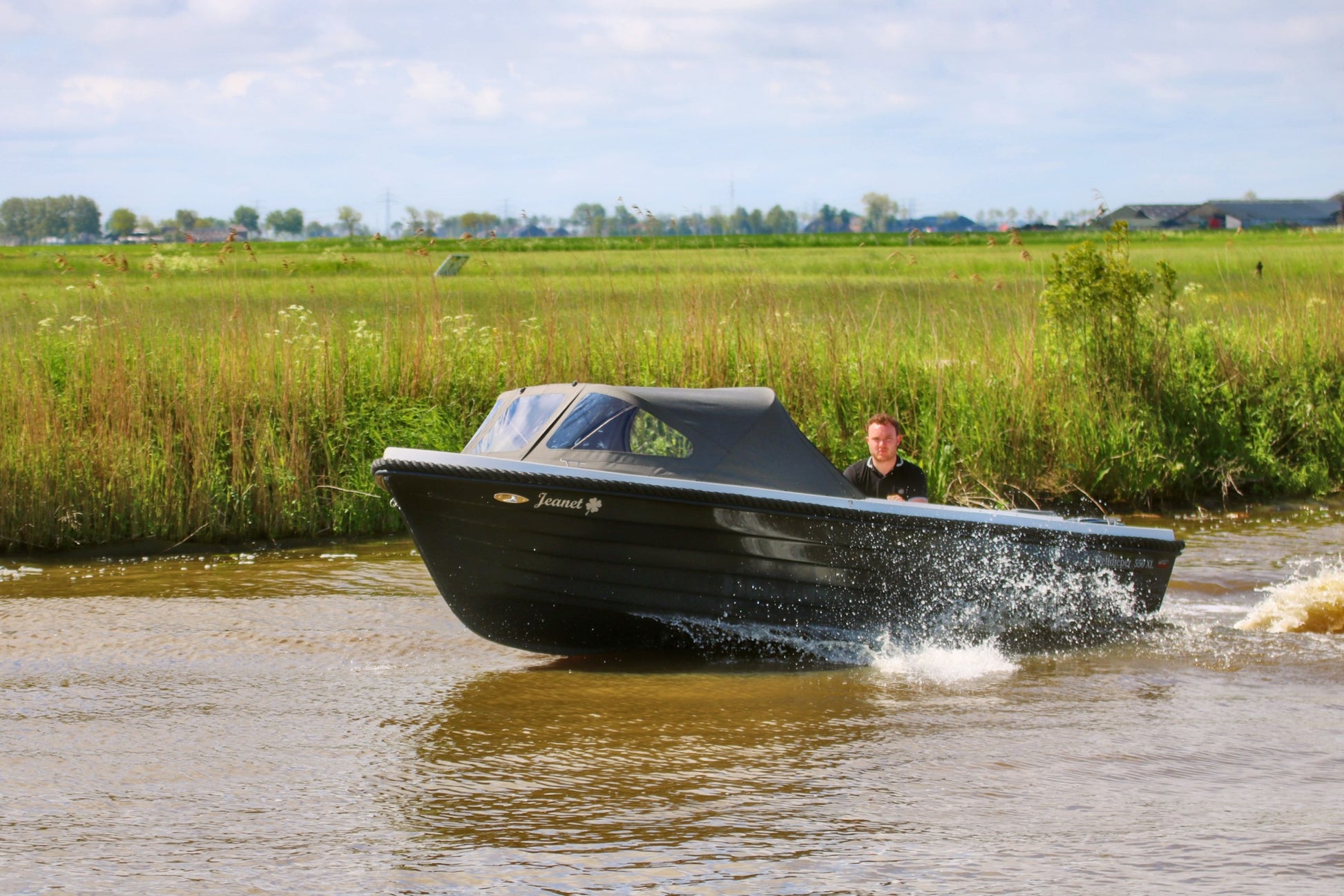 Neerklapbare buiskap met ramen, zo zit je heerlijk de zon, regen en wind. Het aangeritste kuipzeil zorgt voor volledige afsluiting tegen vuil en vocht wanneer je niet vaart.